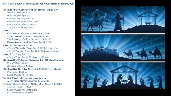 Holy Spirit Family of Parishes Worship Schedule and Locations